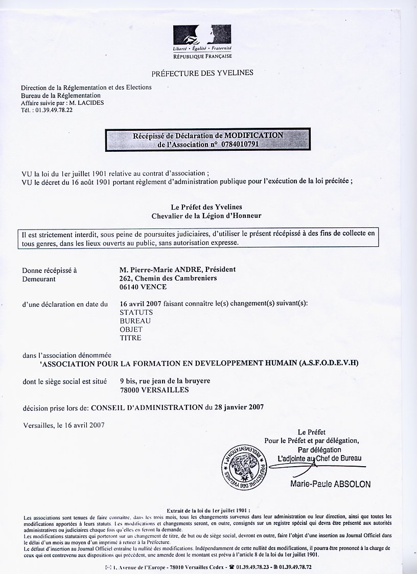 ASFODEVH 9 bis Rue J. de la Bruyère 78000 Versailles Tel : 04 93 24 25 98 e mail : contact@asfodevh.net pmandre@voila.fr
